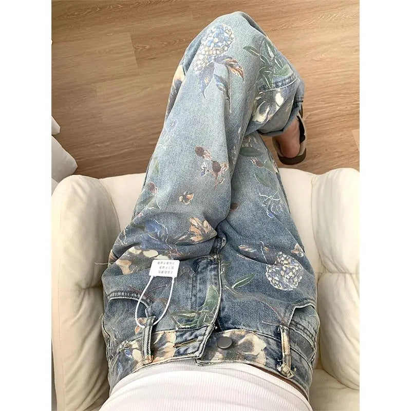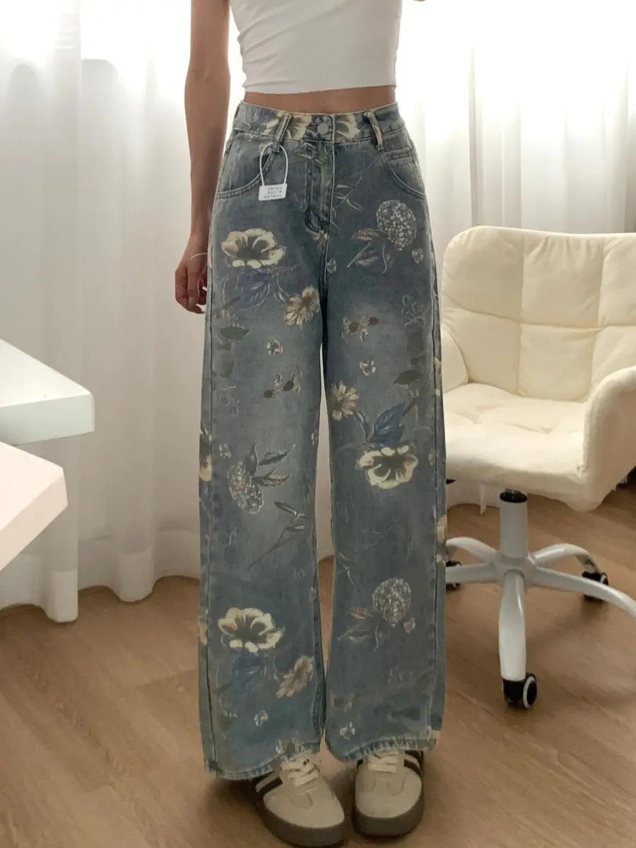 Printed Loose Straight Leg Jean