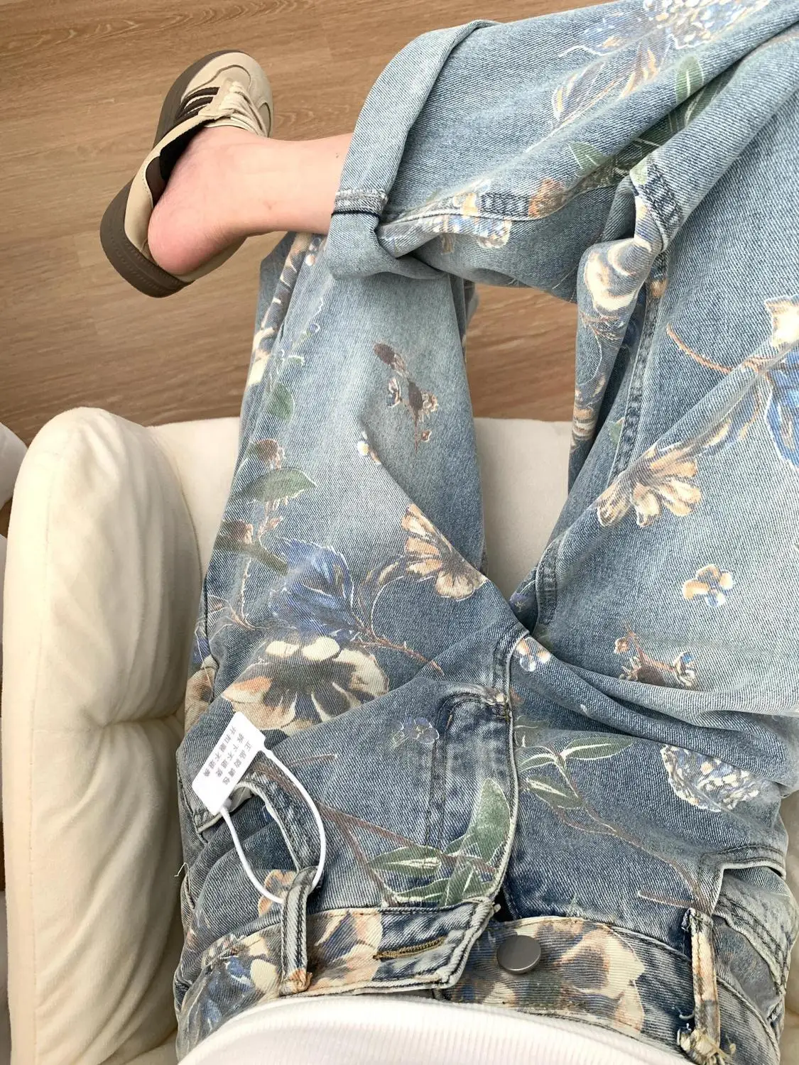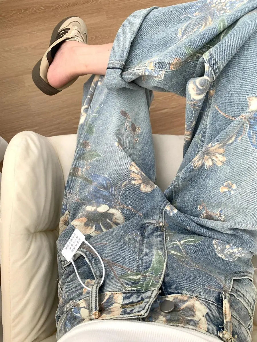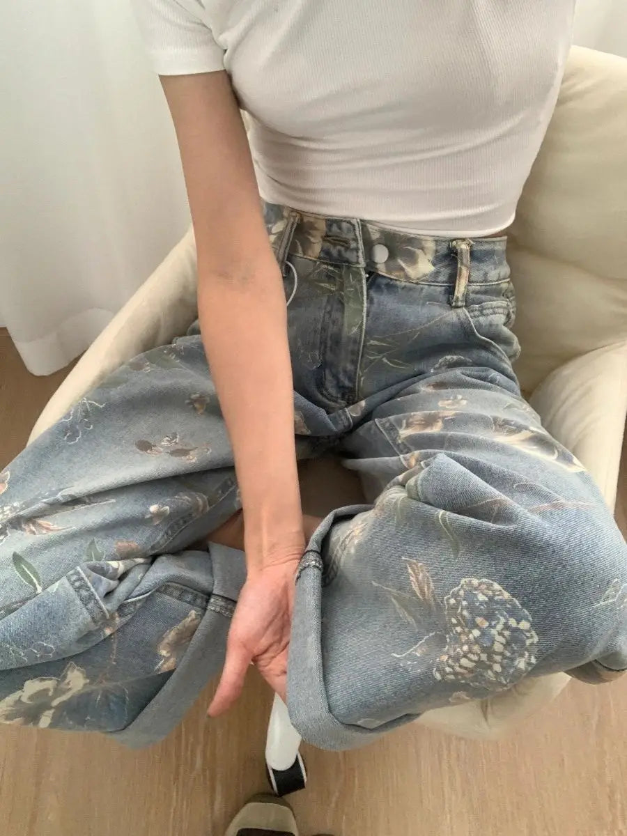 Printed Loose Straight Leg Jean