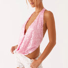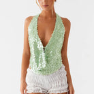 Women Tank Tops Sparkly Sequins Backless Halter Neck Vests Summer Sleeveless Tops Streetwear